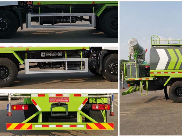 其它 | ABS型號(hào):3631010-C2000,VIE ABS-Ⅱ;ABS生產(chǎn)企業(yè):東科克諾爾商用車制動(dòng)系統(tǒng)(十堰)有限公司,浙江萬(wàn)安科技股份有限公司;選裝描述:隨底盤選裝駕駛室,選裝不帶噴霧機(jī)組后平臺(tái);側(cè)后防護(hù)情況:均采用Q235B材質(zhì),均采用螺栓連接,后下部防護(hù)尺寸:150×50(mm),離地面高度450mm;罐體總?cè)萘?立方米):9.77立方米、罐體有效容積(立方米):9.31立方米,罐體尺寸(罐體長(zhǎng)×長(zhǎng)軸×短軸)(mm)為4300×2150×1480;專用功能及裝置:專用裝置:罐體、灑水泵和噴霧機(jī)組,主要用于路面灑水及園林綠化;不裝噴霧機(jī)組時(shí),專用裝置為灑水泵和罐體;其他說(shuō)明:整車長(zhǎng)度(mm)/前懸(mm)的對(duì)應(yīng)關(guān)為:7985/1475,7830/1320,8025/1515;當(dāng)選裝帶噴霧機(jī)組時(shí),整備質(zhì)量為6955kg,額定載質(zhì)量(kg)/準(zhǔn)乘人數(shù)(人)對(duì)應(yīng)關(guān)系為:8850/3,8915/2;當(dāng)選裝不帶噴霧機(jī)組時(shí),整備質(zhì)量為6635kg,額定載質(zhì)量(kg)/準(zhǔn)乘人數(shù)(人)對(duì)應(yīng)關(guān)系為:9170/3,9235/2。僅采用發(fā)動(dòng)機(jī)D4.0NS6B170,D4.0NS6B195,B6.2NS6B210,YCS04180-68,YCY30165-60:選裝罐體涂裝外觀,選裝前沖霧炮,選裝立式水冷霧炮機(jī)組、自流口和后對(duì)沖,選裝大平臺(tái)的高位花灑、臥式水冷霧炮機(jī)組,選裝霧炮樣式。選裝踏梯樣式,選裝塑料輪罩。 | ||
