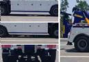 托舉質(zhì)量5360kg.防護(hù)材料:Q235A碳鋼,連接方式:左右側(cè)面防護(hù)裝置為裙板結(jié)構(gòu),與副梁焊接連接;后部專用裝置離地面為mm:410,與后防護(hù)干涉,故后防護(hù)豁免.ABS系統(tǒng)型號(hào)為4460046300,生產(chǎn)企業(yè)為威伯科汽車控制系統(tǒng)(中國(guó))有限公司.此車專用裝置為:托臂.軸距/后懸對(duì)應(yīng)關(guān)系為(mm):5600/1700,4600/2700.