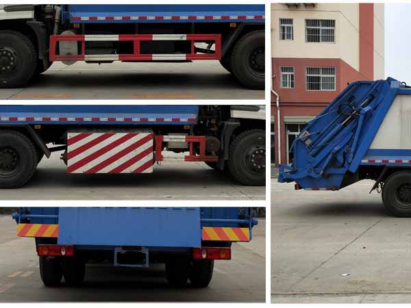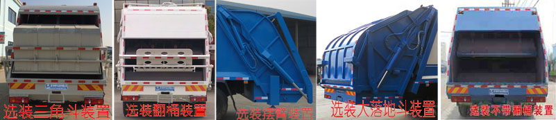 其它 | 1、該車(chē)僅選用3950mm,4500mm和4700mm軸距,該車(chē)有六種可選翻轉(zhuǎn)樣式,A:封閉式掛桶裝置(主照片),B:三角斗裝置,C:翻桶裝置,D:擺臂裝置,E:大落地斗裝置,F:不帶翻桶裝置。當(dāng)選擇ABCDE時(shí),整車(chē)后懸為2670mm,離去角為15°,該車(chē)整車(chē)長(zhǎng)(mm)/軸距(mm)的對(duì)應(yīng)關(guān)系為:8800/4700,8600/4500,8050/3950;當(dāng)選擇F時(shí),整車(chē)后懸為2420mm,離去角為16°,該車(chē)整車(chē)長(zhǎng)(mm)/軸距(mm)的對(duì)應(yīng)關(guān)系為:8550/4700,8350/4500,7800/3950;額定載質(zhì)量(kg)/駕駛室準(zhǔn)乘人數(shù)(人)的對(duì)應(yīng)關(guān)系為:7345/3,7410/2。2、防護(hù)材料:Q235碳鋼,連接方式:左右側(cè)面防護(hù)采用焊接連接在箱體底板上,后部防護(hù)由專(zhuān)用裝置代替豁免,離地高度為450mm. 3、ABS型號(hào)為ABS-E 4S/4M和3631010-C2000,生產(chǎn)廠家為威伯科汽車(chē)控制系統(tǒng)(中國(guó))有限公司和東科克諾爾商用車(chē)制動(dòng)系統(tǒng)(十堰)有限公司.4、該車(chē)安裝帶衛(wèi)星定位功能的行駛記錄儀.5、該車(chē)主要功能:能將垃圾自行壓實(shí)裝入,轉(zhuǎn)運(yùn)和卸料;主要專(zhuān)用裝置:箱體裝置. | ||