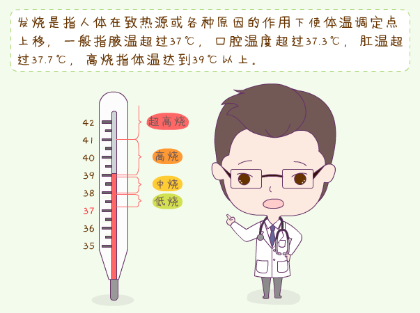 發(fā)熱是指機(jī)體在致熱原作用下或各種原因引起體溫調(diào)節(jié)中樞的功能障礙時,體溫升高超出正常范圍,即體溫升高超出一天中正常體溫波動的上限。臨床工作中通常采用肛溫≥38℃或腋溫≥37.5℃定義為發(fā)熱。