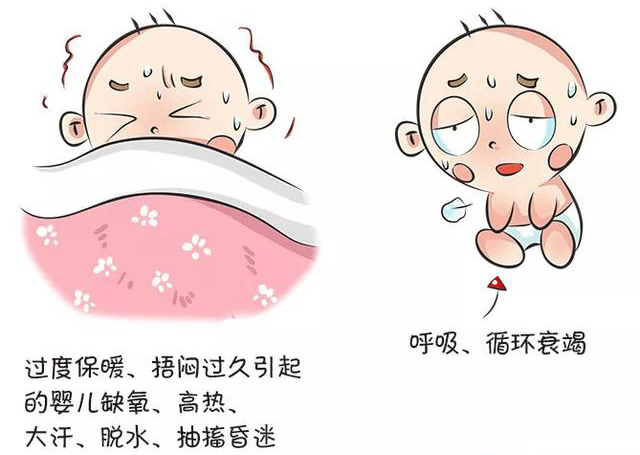 「冬季中暑」也稱(chēng)嬰兒捂熱綜合癥、蒙被缺氧綜合征等,在寒冷的天氣,家長(zhǎng)為了給孩子保暖,在房間內(nèi)有空調(diào)、暖氣的情況下,仍穿著過(guò)多的衣服;有些與家長(zhǎng)同睡的孩子,家長(zhǎng)睡著后無(wú)意中使被褥捂蓋孩子的口鼻;更有家長(zhǎng)聽(tīng)信傳統(tǒng)觀念,給發(fā)燒的孩子裹棉被捂汗降溫。