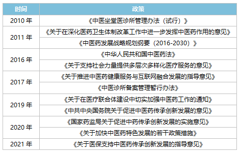 此外政府一直致力于發(fā)揮我國醫(yī)療保障制度的優(yōu)越性,先后出臺《關(guān)于加快中醫(yī)藥特色發(fā)展若干政策措施的通知》《關(guān)于醫(yī)保支持中醫(yī)藥傳承創(chuàng)新發(fā)展的指導(dǎo)意見》等若干文件,從政策端到審批端到支付端,都實(shí)現(xiàn)了政策紅利加碼。