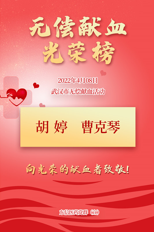 最美人間四月天,在這個(gè)春暖花開的季節(jié),湖北東信醫(yī)藥有限公司(下稱:東信醫(yī)藥)的青年志愿者加入了四唯街無償獻(xiàn)血的隊(duì)伍。4月11日上午,東信醫(yī)藥的志愿者們來到四唯街道組織的獻(xiàn)血大巴,在工作人員有序組織下填表、化驗(yàn)、抽血,他們以實(shí)際行動(dòng)綻放青春“熱血”風(fēng)采,為武漢的血液供應(yīng)注入了愛心力量。