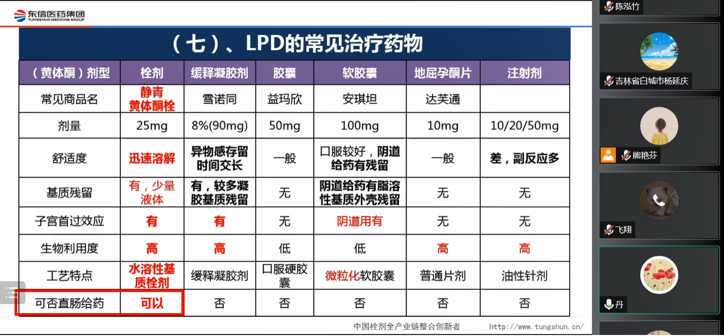 隨后,李主任肯定了黃體酮栓在輔助生殖領域應用的優勢,并認為陰道黃體支持已成為全球趨勢。相較于其他劑型,栓劑陰道給藥途徑不良反應小,避開了肝臟首過效應,靶器官藥物濃度高。并且由于靜青黃體酮栓獨特的水溶性基質,吸收完全無殘渣,安全性好,從而提升了患者的依從性。再加上黃體酮栓獨特的第四腔道給藥方式,方便了部分特殊人群的使用,未來在輔助生殖領域將大有作為。會議最后,李主任結合自身臨床使用體會,分享了黃體酮栓在輔助生殖領域的成功病例,并對線上觀眾的提問做了詳盡的解答。會議在濃厚的學術氛圍中落下帷幕,線上、線下的參會觀眾收獲頗豐,對李主任的精彩分享表達了贊同和認可。