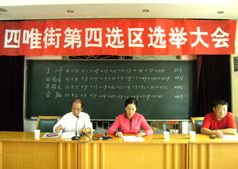 四維街第四選區(qū)選舉大會統(tǒng)計并公布所有流動選區(qū)的票箱票選結(jié)果