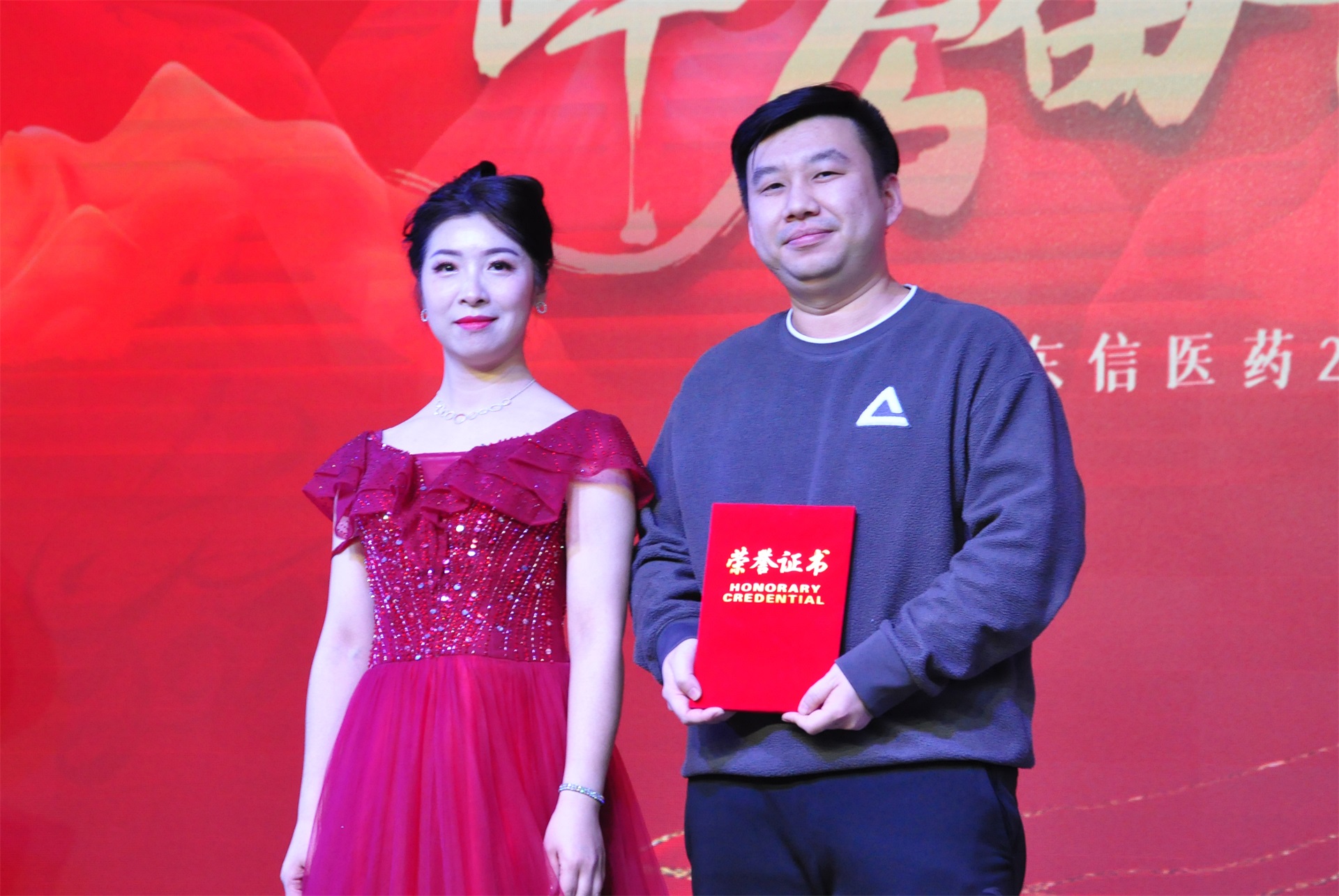 在精彩的文藝演出過(guò)程中,表彰活動(dòng),綜藝節(jié)目、娛樂(lè)游戲穿插進(jìn)行。東信醫(yī)藥董事長(zhǎng)田南希女士、東信醫(yī)藥總經(jīng)理李建軍先生、黨支部書(shū)記兼副總經(jīng)理張琳女士、副總經(jīng)理?xiàng)钋嗯?,以及職能部門(mén)的負(fù)責(zé)人相繼揭曉了“東信醫(yī)藥2022年度表彰總結(jié)大會(huì)”的各個(gè)獎(jiǎng)項(xiàng),并向獲得榮譽(yù)的先進(jìn)集體和個(gè)人頒發(fā)獎(jiǎng)金及榮譽(yù)證書(shū)。