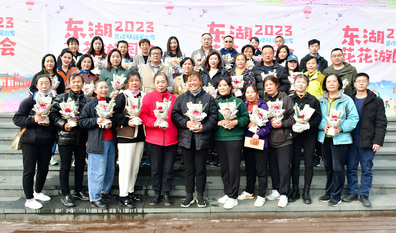 “愛心健康跑”開始前,參與活動的民盟市委領(lǐng)導(dǎo)慰問了東湖文旅集團旅游物業(yè)公司10位困難女保潔員。