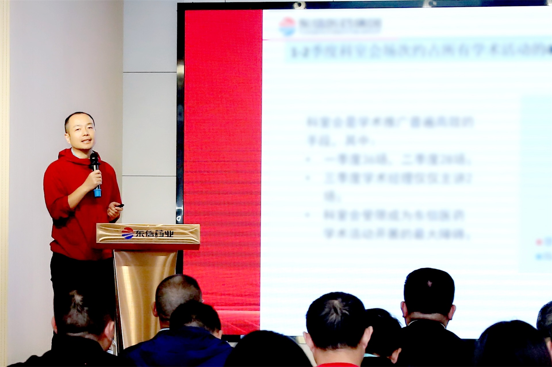 下午的會議上,銷售總監(jiān)兼商務部部長余江舟回顧了商務部一至三季度的工作,并匯報了四季度的重點工作計劃。商務部四季度將繼續(xù)堅持學術推廣,完善專家網(wǎng)絡建設,打造核心省區(qū)辦事處,細化管理,打造標桿,重點產(chǎn)品突破上量。