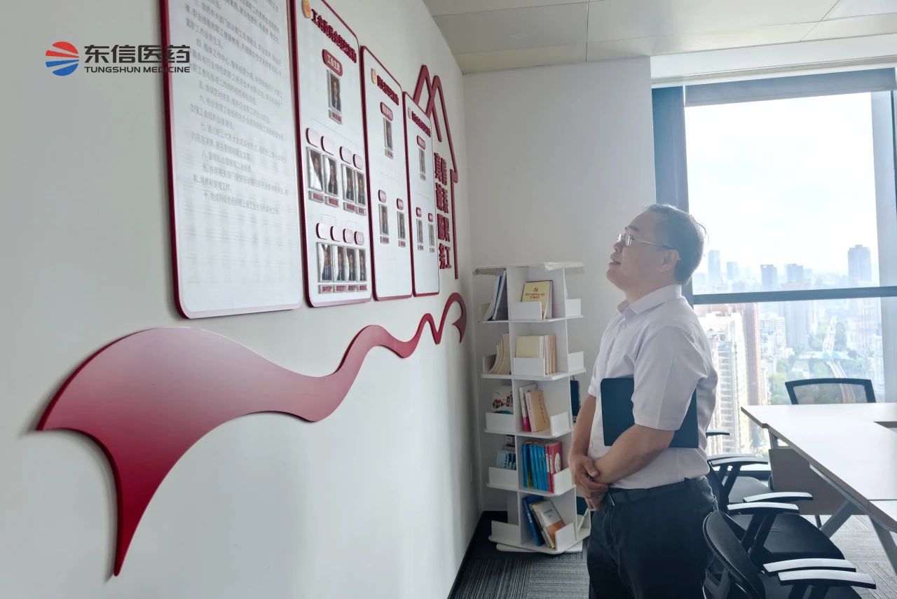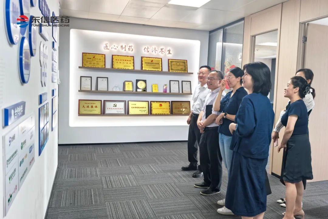 授牌儀式后,宋承虎主席、李海燕主任一行在東信醫(yī)藥總經(jīng)理李建軍的陪同下,先后參觀了企業(yè)精心打造的文化展示空間與黨群建設(shè)陣地。宋承虎主席對東信醫(yī)藥將企業(yè)文化與黨建工作深度融合、以文化軟實力賦能企業(yè)發(fā)展的創(chuàng)新實踐給予高度評價。他指出,東信醫(yī)藥通過文化凝聚員工共識、以黨建引領(lǐng)發(fā)展方向的做法,不僅為企業(yè)注入了持久活力,更為行業(yè)文化建設(shè)樹立了典范。