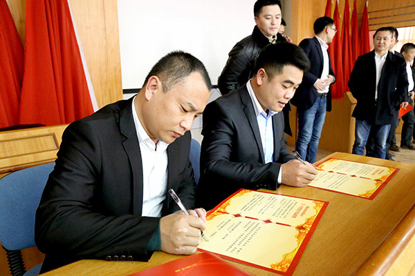 會議期間,三個銷售部門的省區(qū)經(jīng)理代表各省區(qū)簽署了2016年度的營銷目標責任狀。
