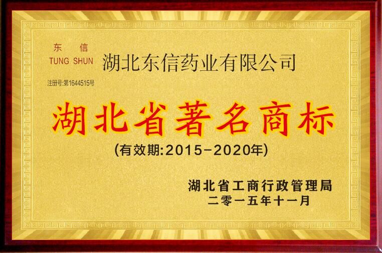 2015年11月,湖北東信藥業(yè)有限公司注冊并使用在醫(yī)藥制劑、人用藥、栓劑上的“東信”商標(biāo)再次被湖北省工商行政管理局認(rèn)定為湖北省著名商標(biāo)。東信商標(biāo)被廣泛用于婦科藥和兒童藥,因其質(zhì)優(yōu)價廉、見效快、療效好、副作用小等優(yōu)點,深受廣大患者喜愛。