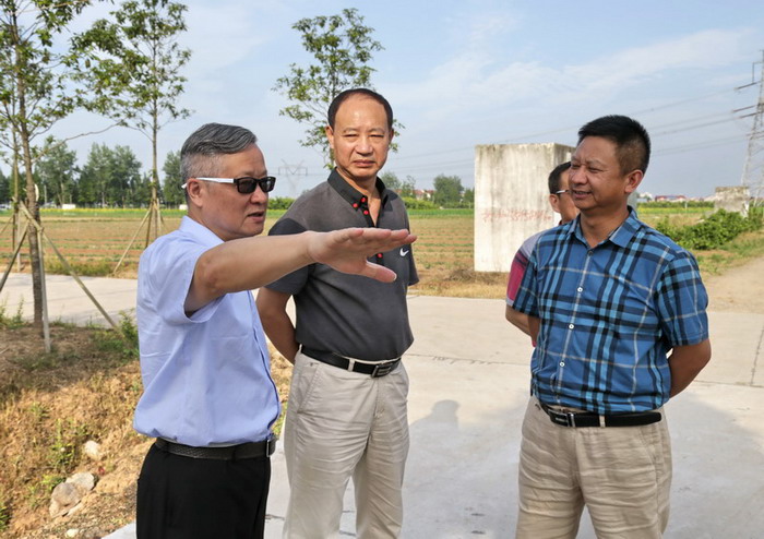 東信藥業(yè)總經(jīng)理田立智(左一)參觀長江大學植物(中藥材)種植培育基地