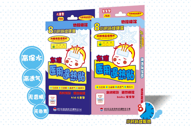 其相較于傳統(tǒng)的退熱方法具有使用方法簡單,可長時間使用,減少給次的劑量與次數,同時由于退熱貼劑本身是一種外用藥,也就是除于物理降溫的一種,避免了“是藥三分毒”的威脅,特別是可減少傳統(tǒng)退燒藥對肝臟的損害。